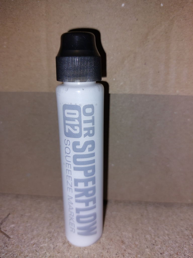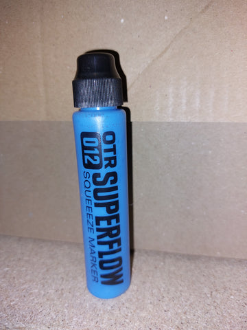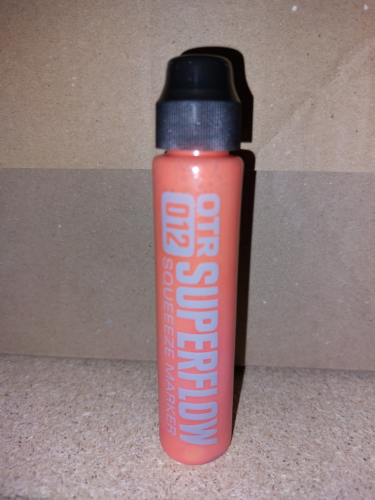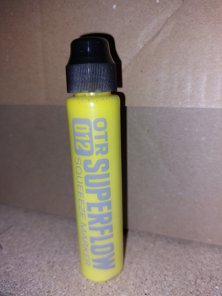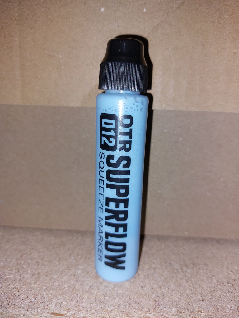 The new OTR.012 SUPERFLOW is a great tool for all street taggers. The squeeze marker combines the soft body of the famous OTR.005 for perfect flow-control with a very robust 10mm nylon round-tip; ideal for any writable surface, both rough and polished. Filled with 30ml alcohol-based black OTR permanent ink or colored 902 paint, the OTR.012 SUPERFLOW is a perfect pocket-marker for any day and night time mission. The new nylon-round tip offers a higher paint or ink flow than many other squeezemarkers and guarantees juicy drippy tags!